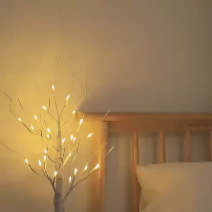 - Beautiful LED Tree: This stunning white birch tree light is handcrafted with lifelike artificial bark made from adhesive tape, creating a natural, artistic look. Standing at 60cm tall with a sturdy 10x10cm base, it features 24 warm white LED lights, making it an ideal bonsai-style Christmas tree decoration for both indoor and outdoor use.